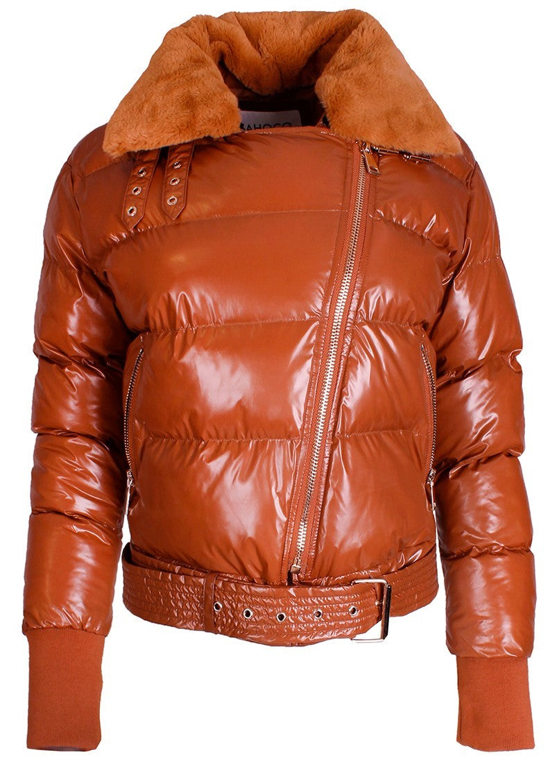 Casaco acolchoado de design cruzado e fivela na gola. Pormenor de gola de pelo removível e punho acabado em nervura. Bolsos laterais com fecho de correr. Fecho de correr.