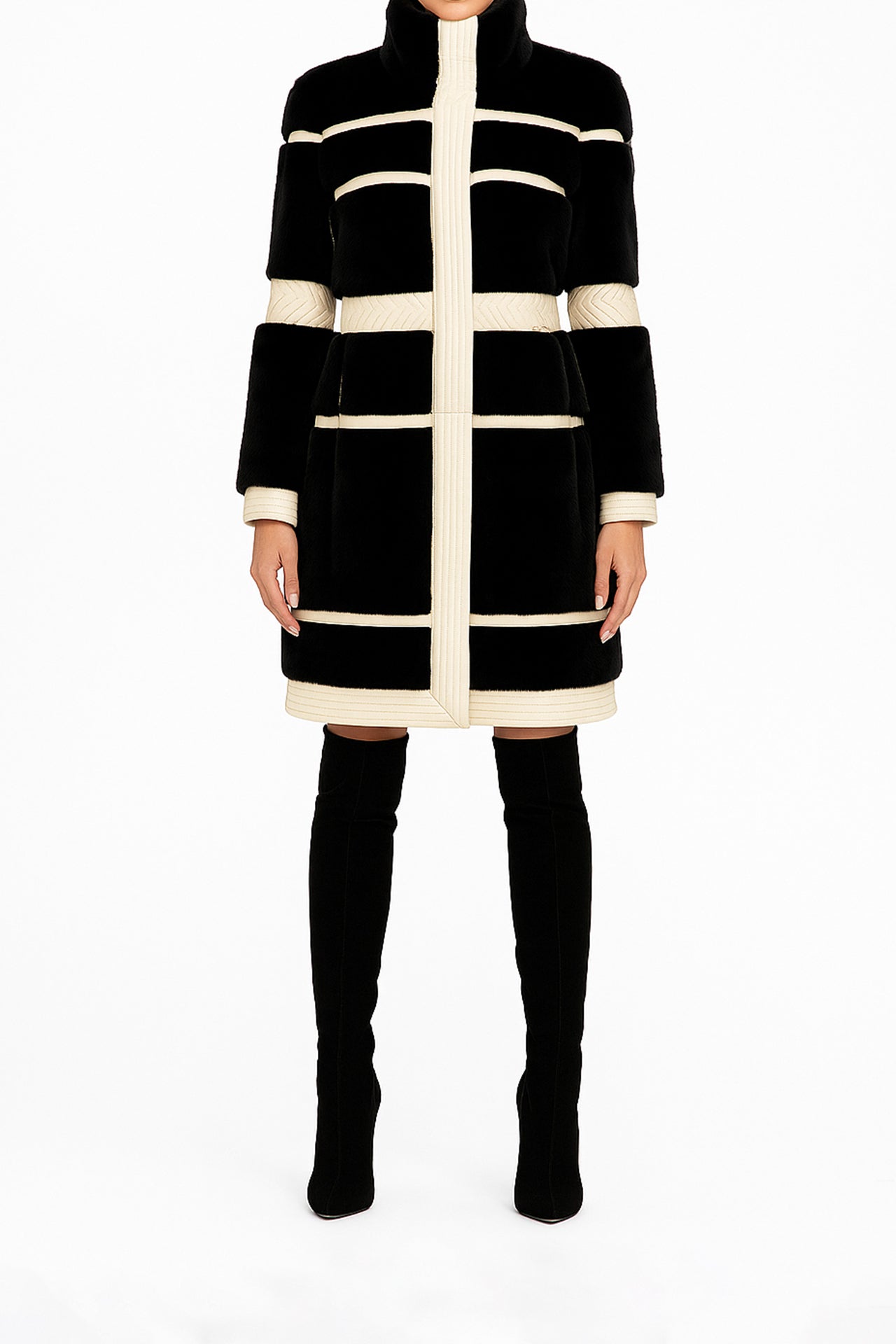 Casaco Estruturado em Pele com Pelo Sintético