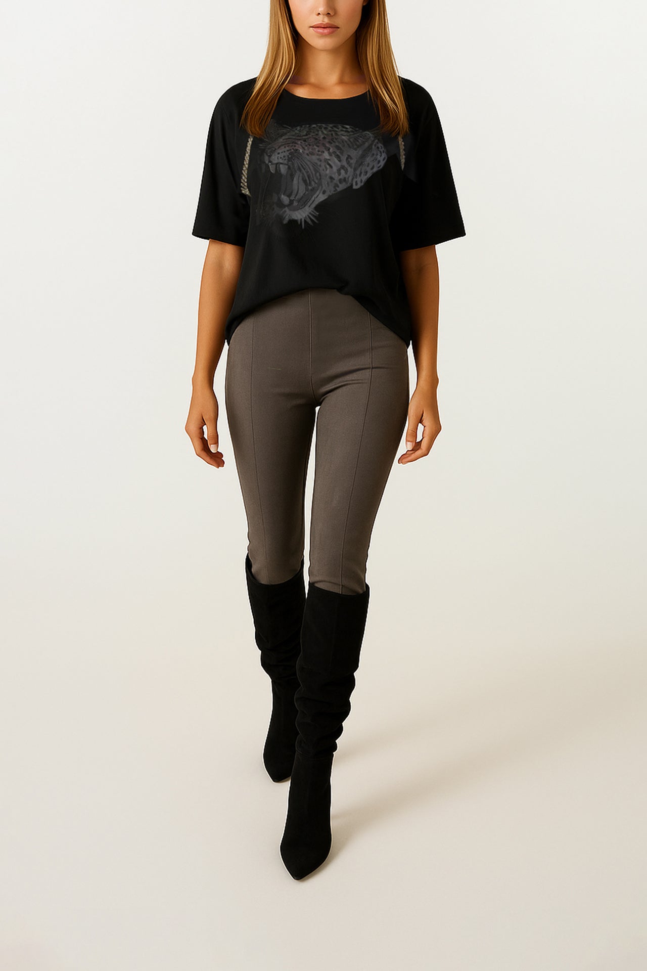Leggings Sahoco em efeito camurça, de corte justo e cintura subida, que realçam a silhueta de forma elegante e confortável. O tecido macio com toque aveludado garante versatilidade, permitindo criar coordenados tanto casuais como sofisticados. Uma peça essencial para o guarda-roupa feminino, ideal para combinar com blusas fluidas, blazers estruturados ou sweaters oversized.