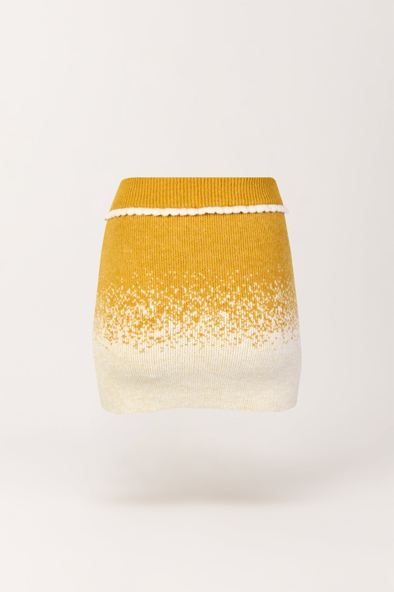 Construída em malha compacta com elasticidade controlada, esta mini-saia apresenta um dégradé meticuloso, criado através de uma técnica de ponto que distribui a cor de forma gradual e homogénea. A cintura é estruturada e reforçada para garantir estabilidade sem perder conforto, enquanto o acabamento com pequeno detalhe em relevo acrescenta dimensão ao design. O fit é ajustado e mantém a forma ao longo do dia, graças à densidade do fio e ao controlo de tensão aplicado na tecelagem.