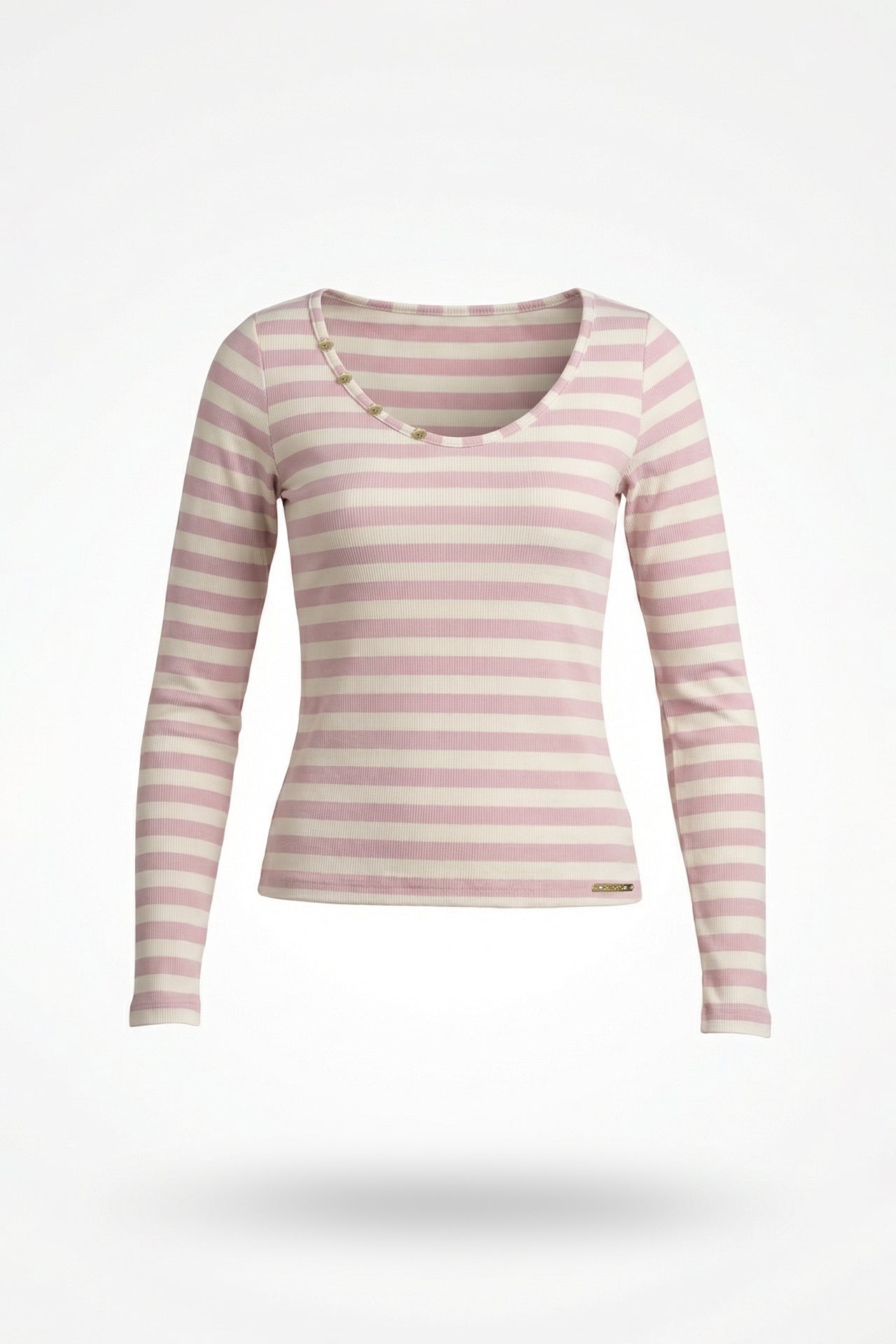 Top às Riscas com Botões no Decote