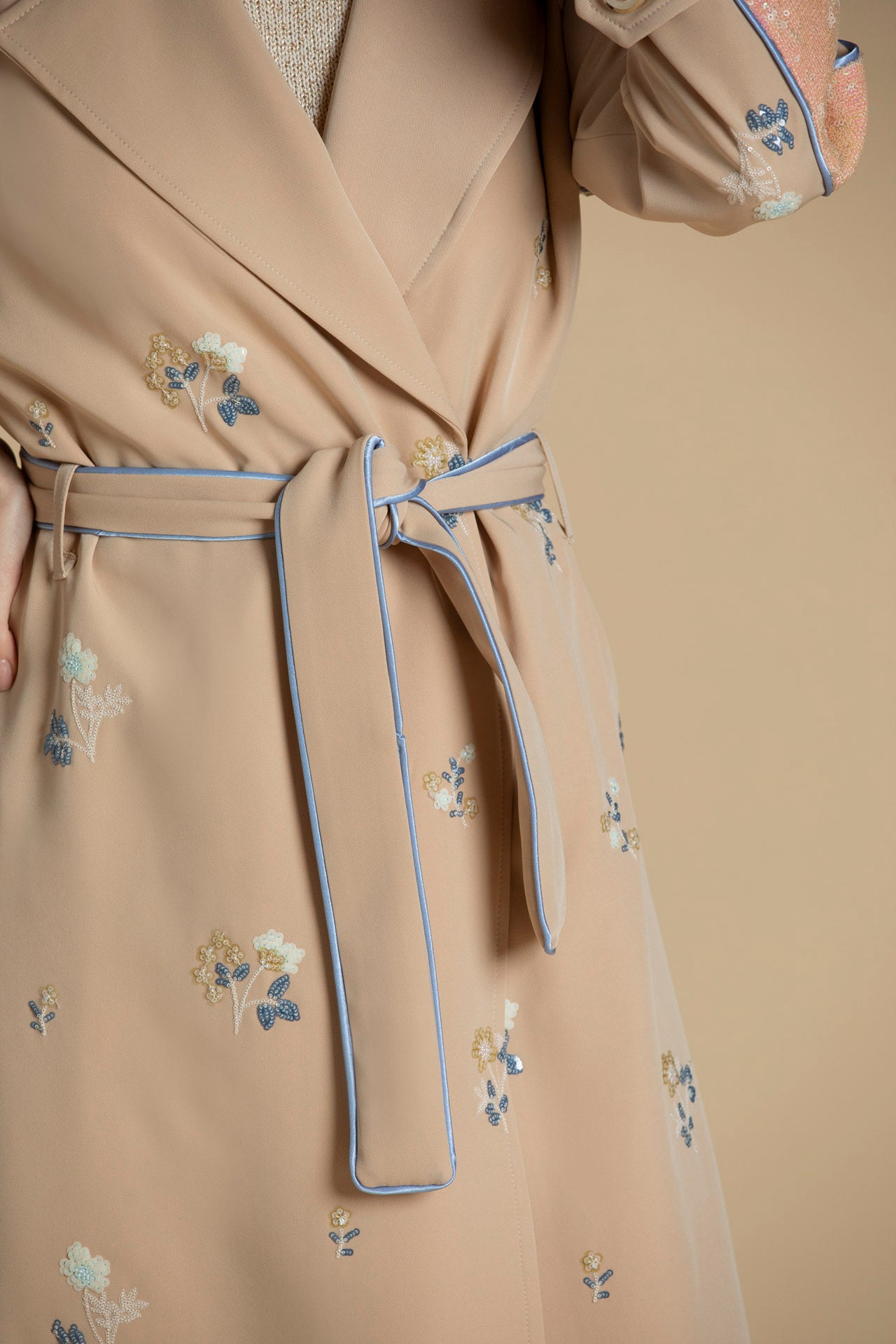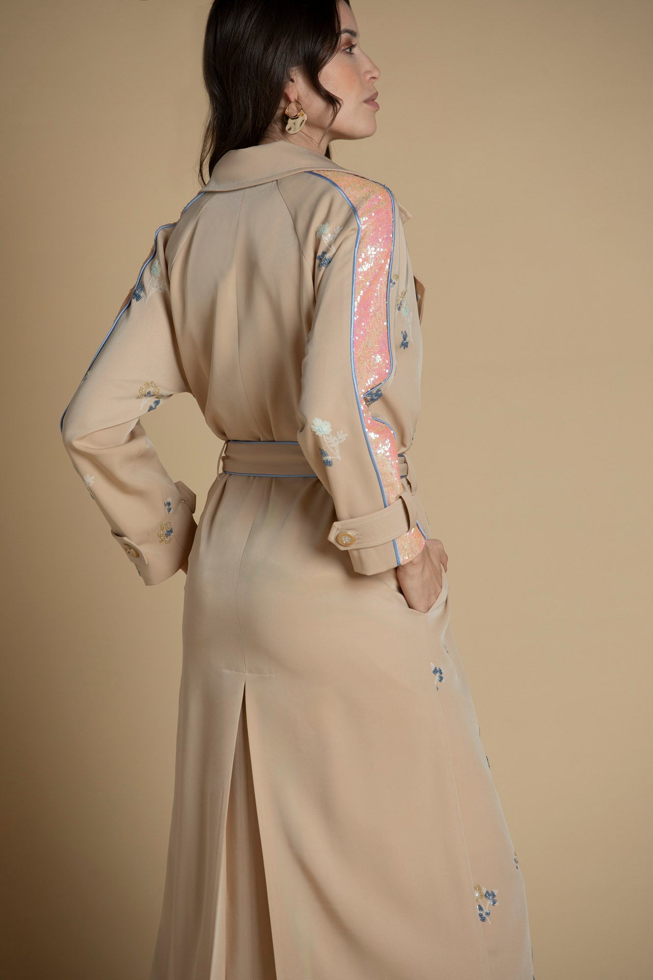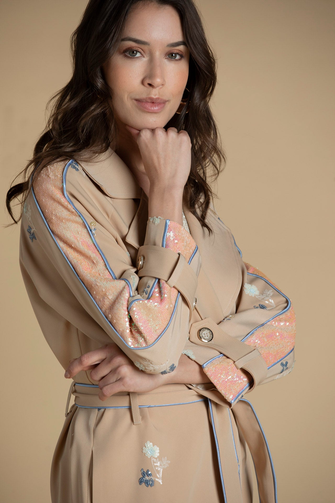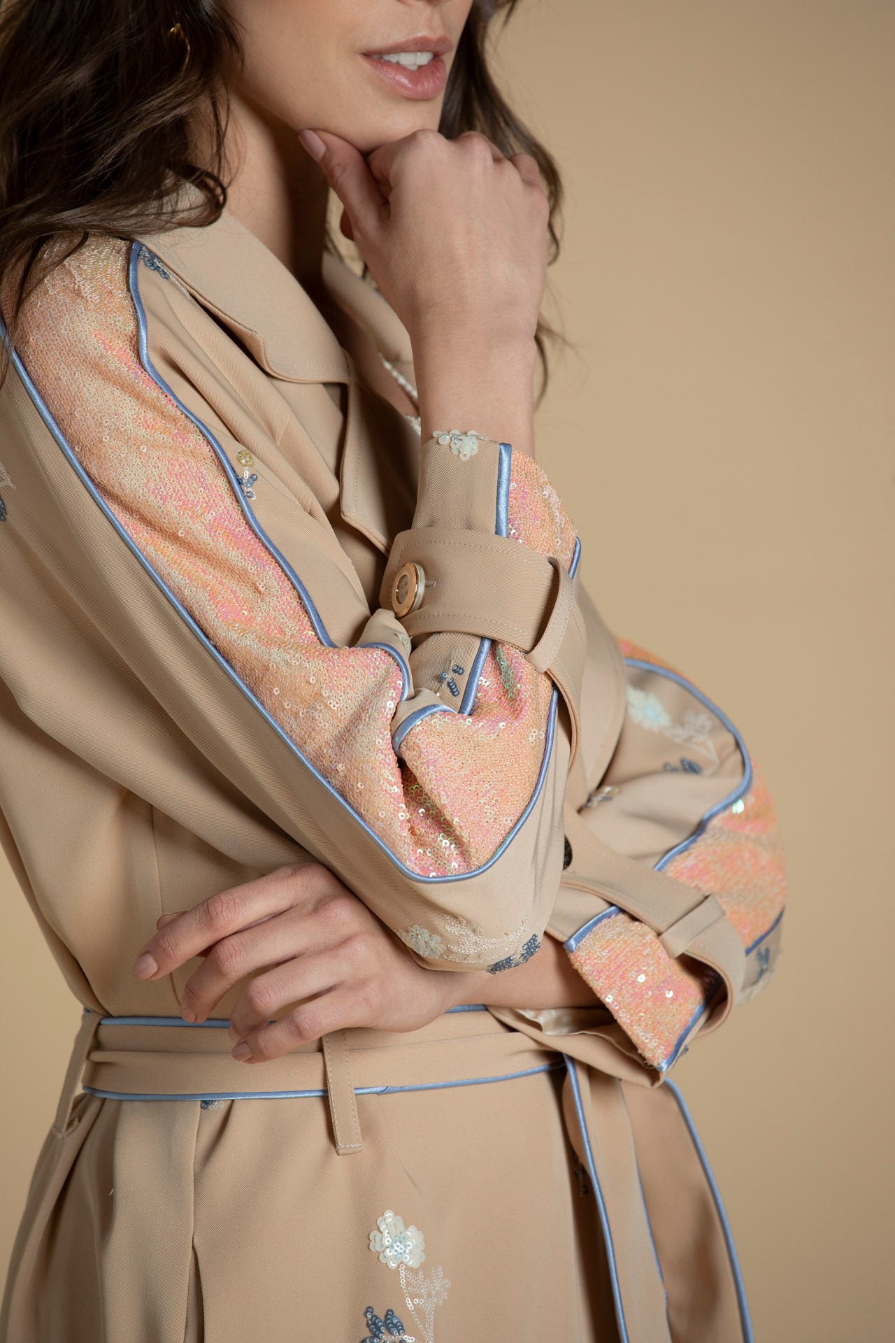 Trench com bordados em lantejoulas