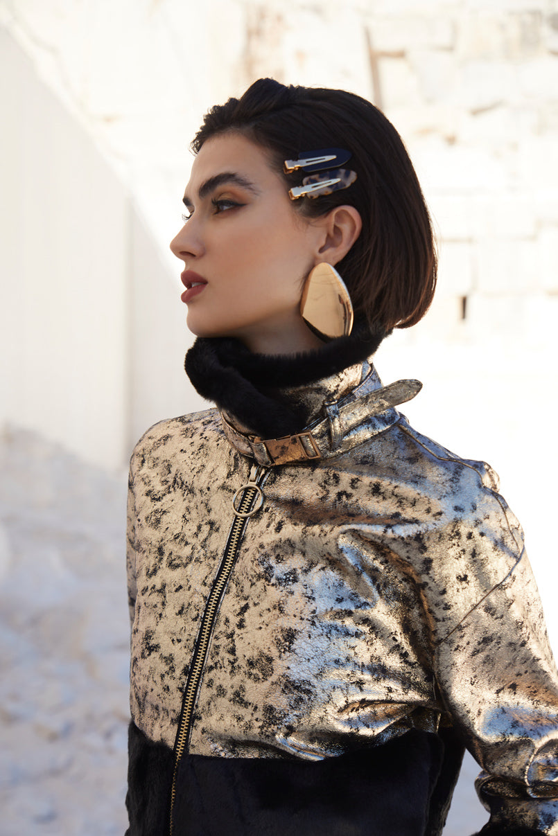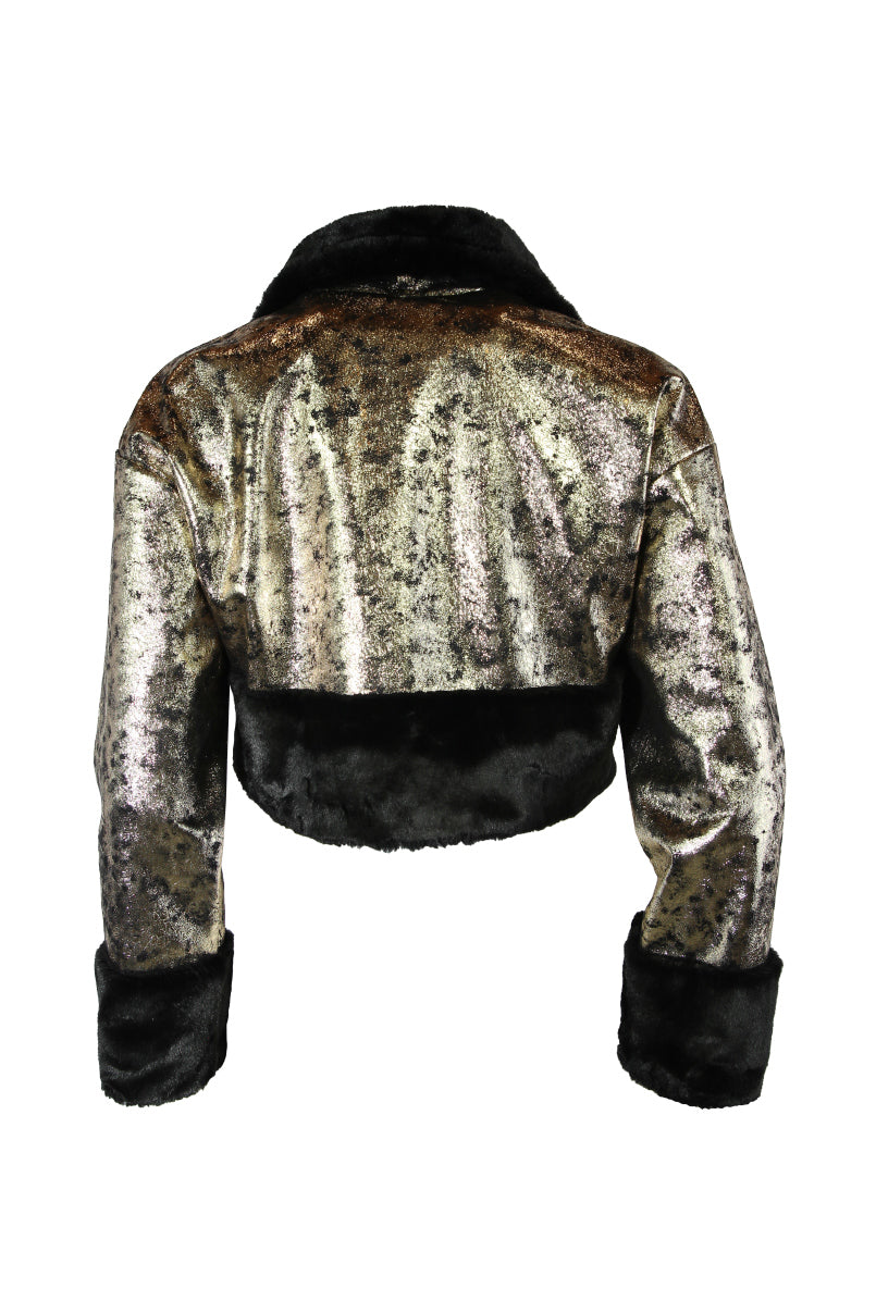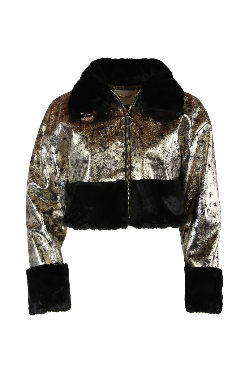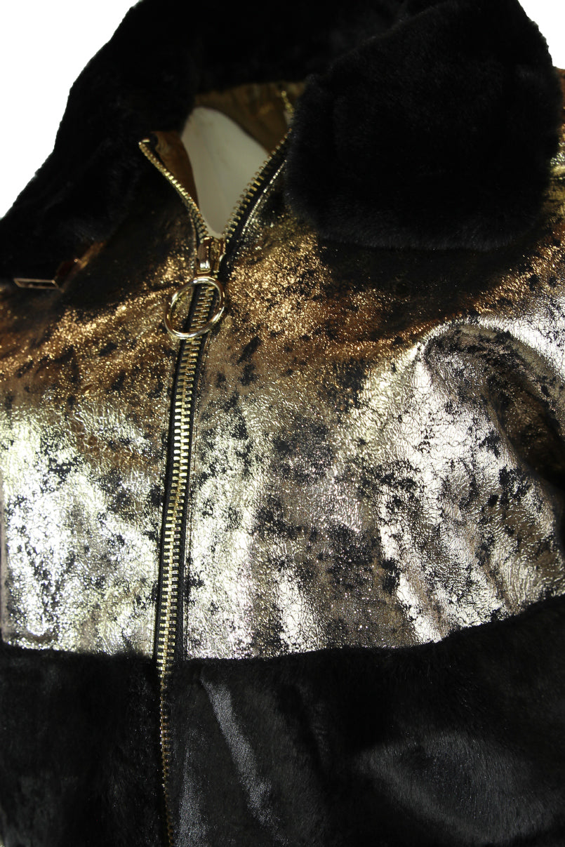 Casaco curto de napa com pelo