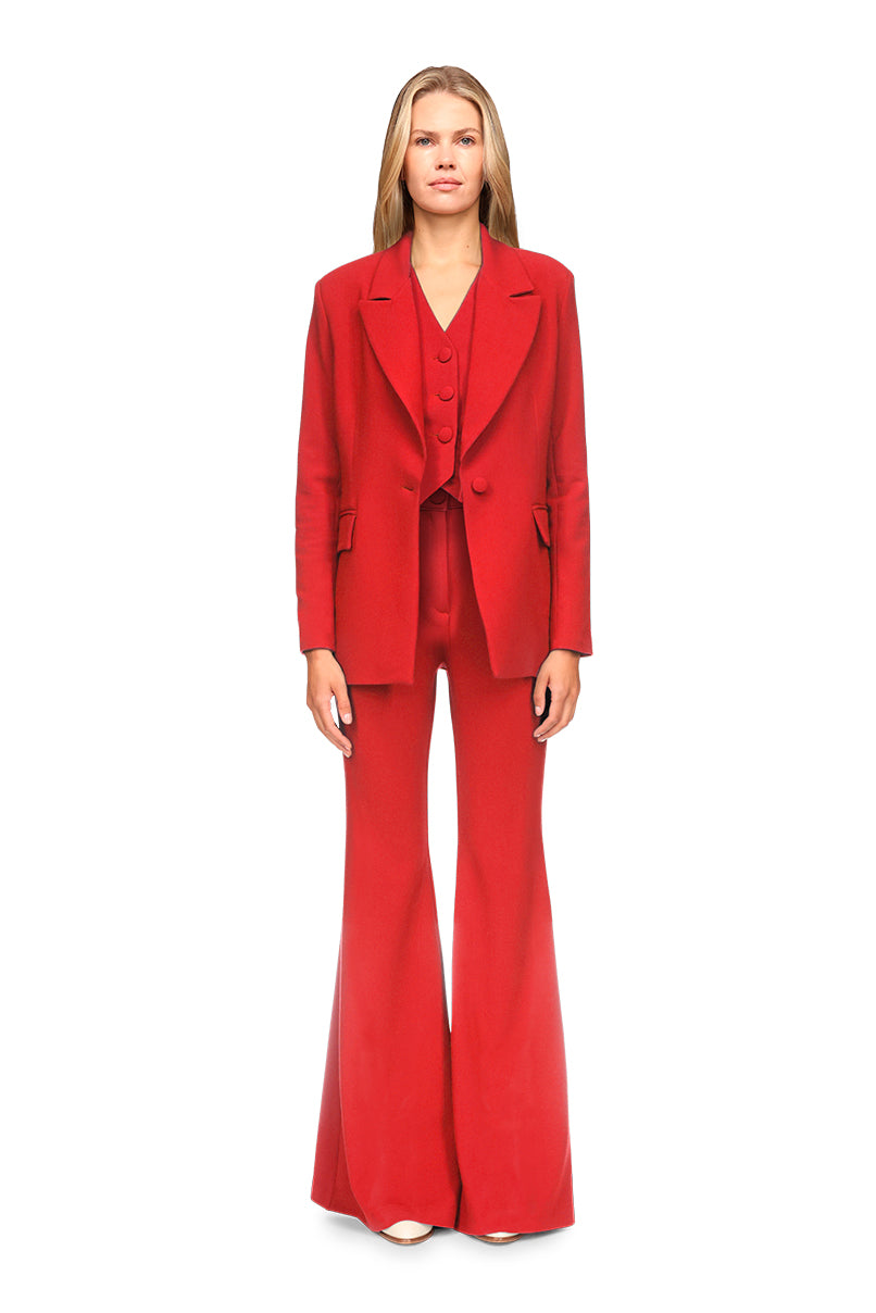 Estas calças de corte à boca de sino são a escolha perfeita para quem procura aliar elegância e conforto numa única peça. Com cintura alta e fecho frontal com botão, realçam a silhueta com sofisticação. O corte amplo e a barra larga conferem movimento e fluidez, enquanto o tecido de alta qualidade assegura um ajuste impecável.