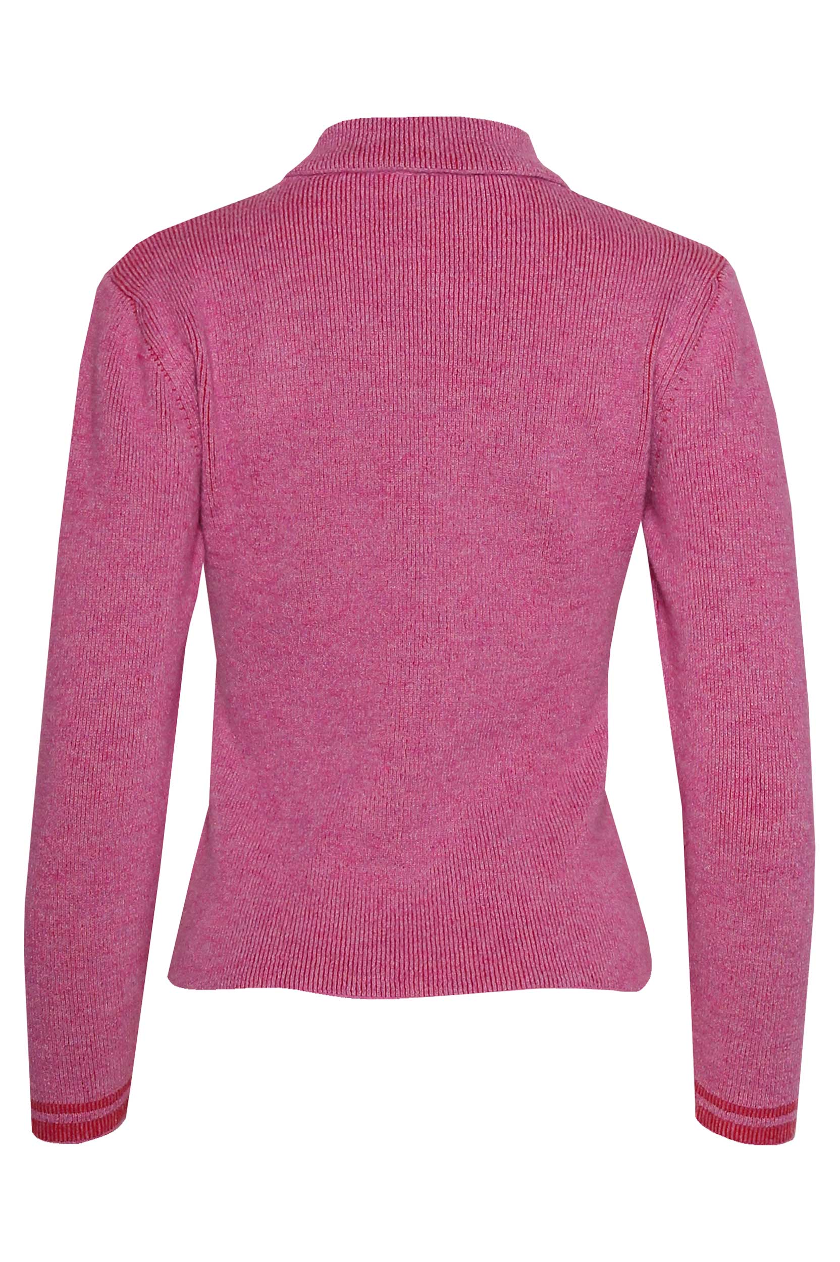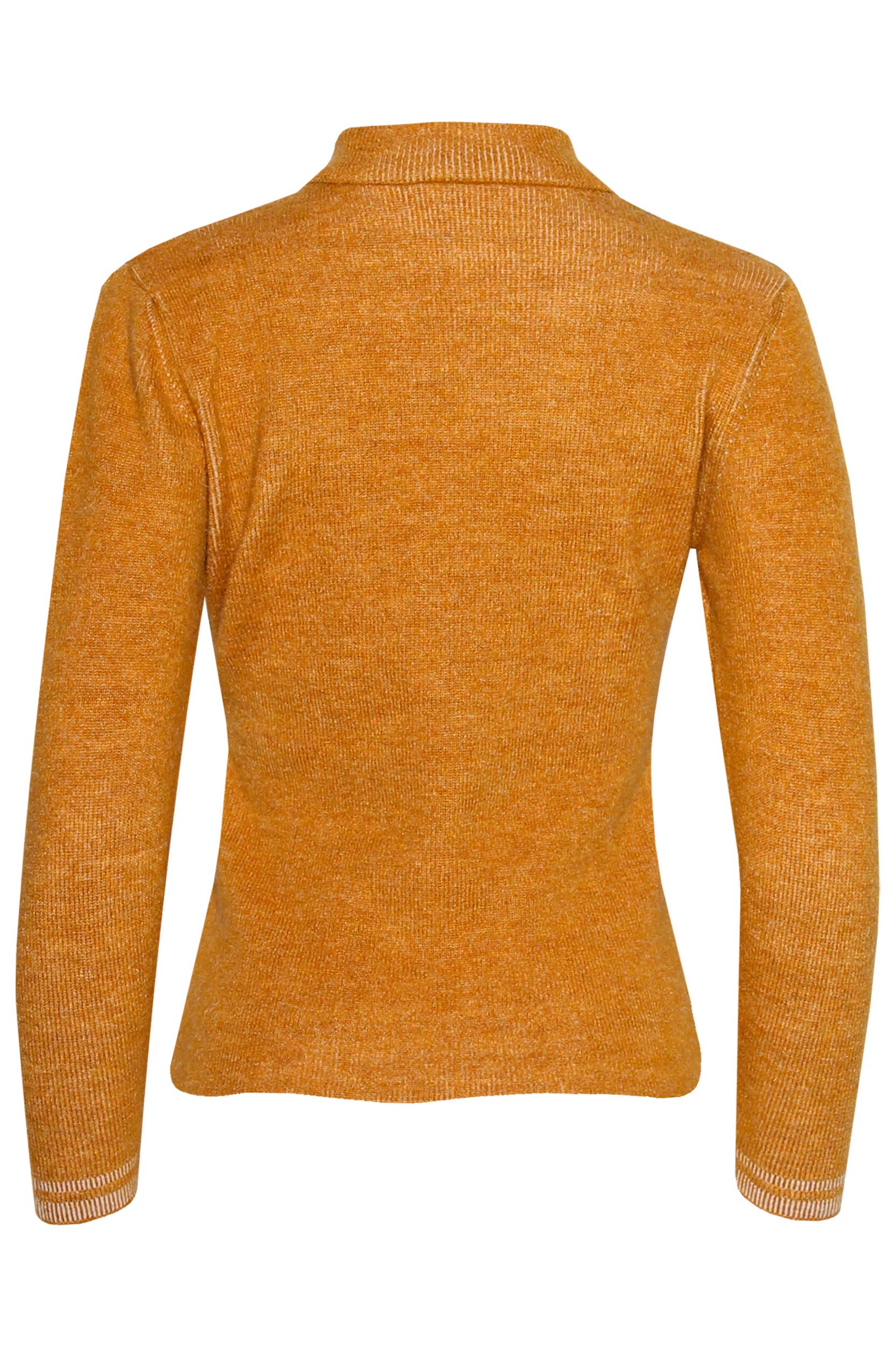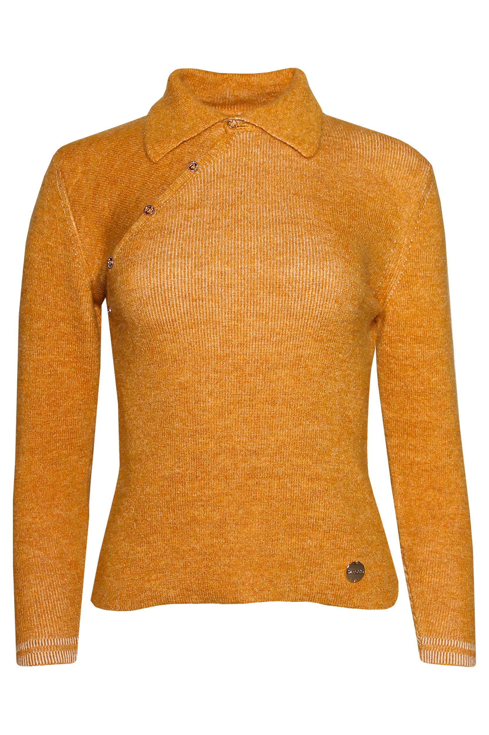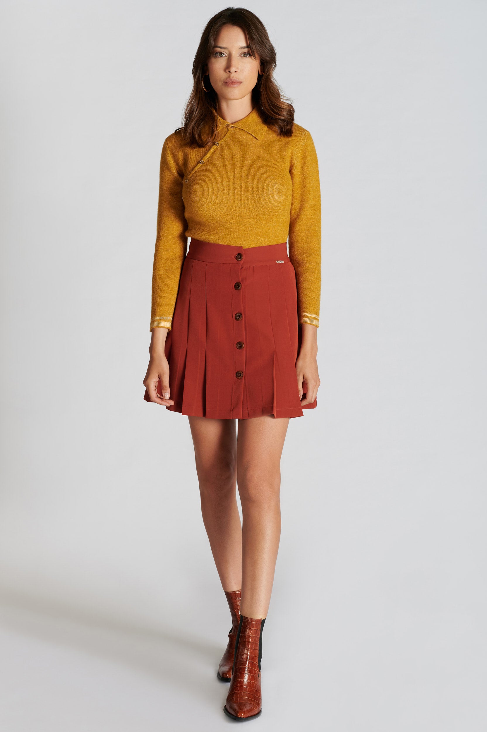 Camisola de malha. Manga comprida. Gola estilo polo. 5 botões dourados na parte frontal esquerda.