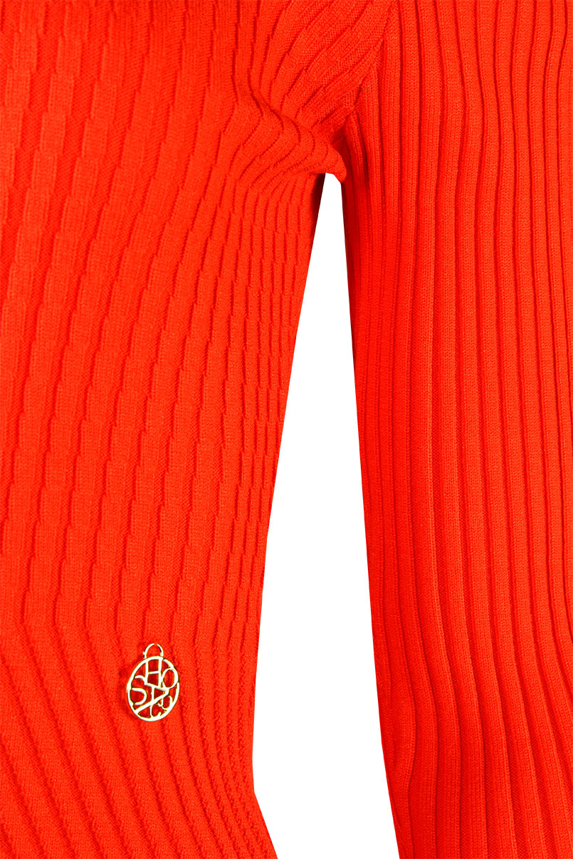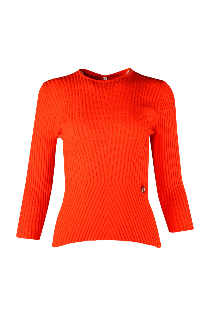 Camisola justa canelada de gola redonda e manga por baixo do cotovelo.