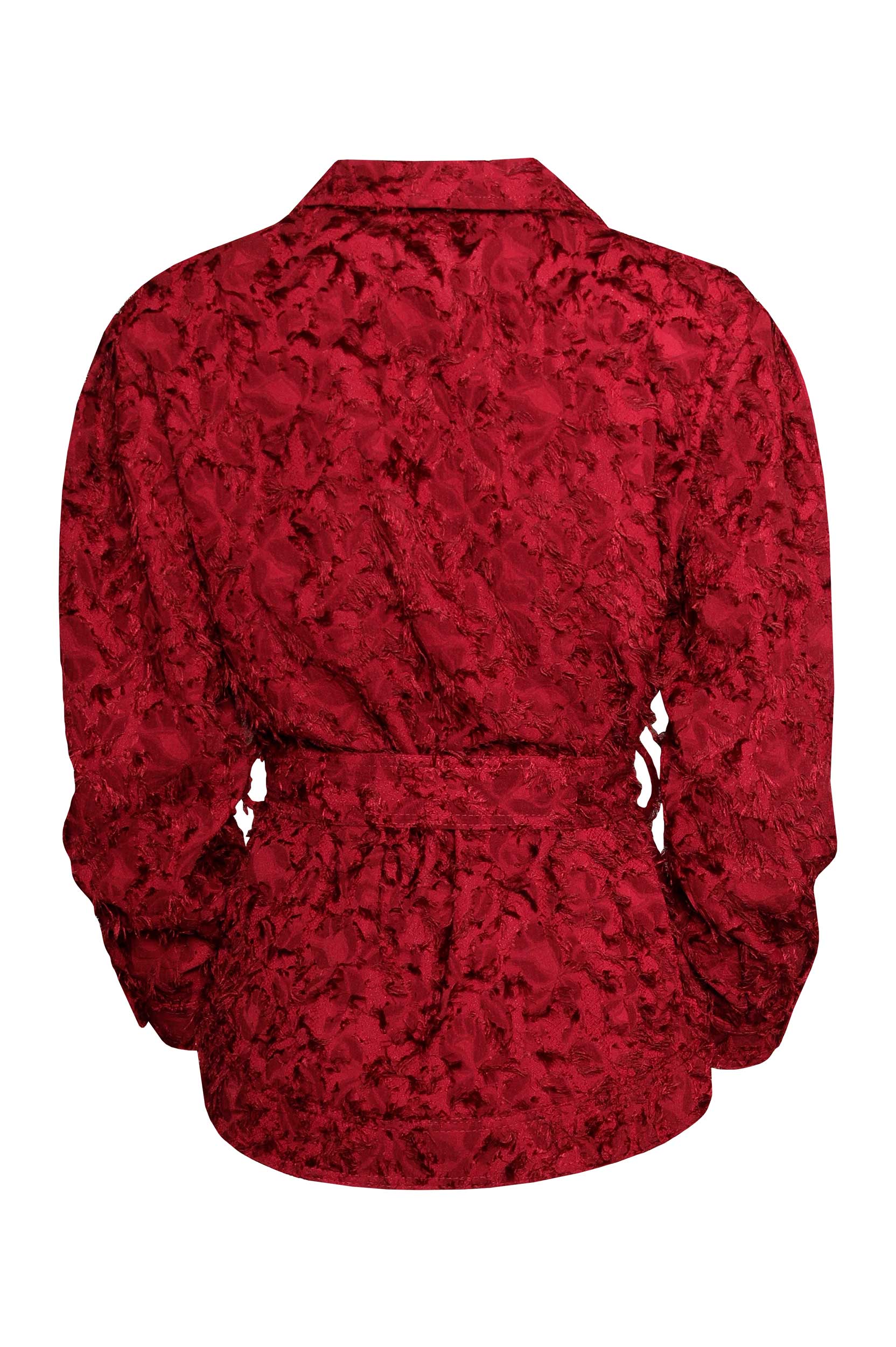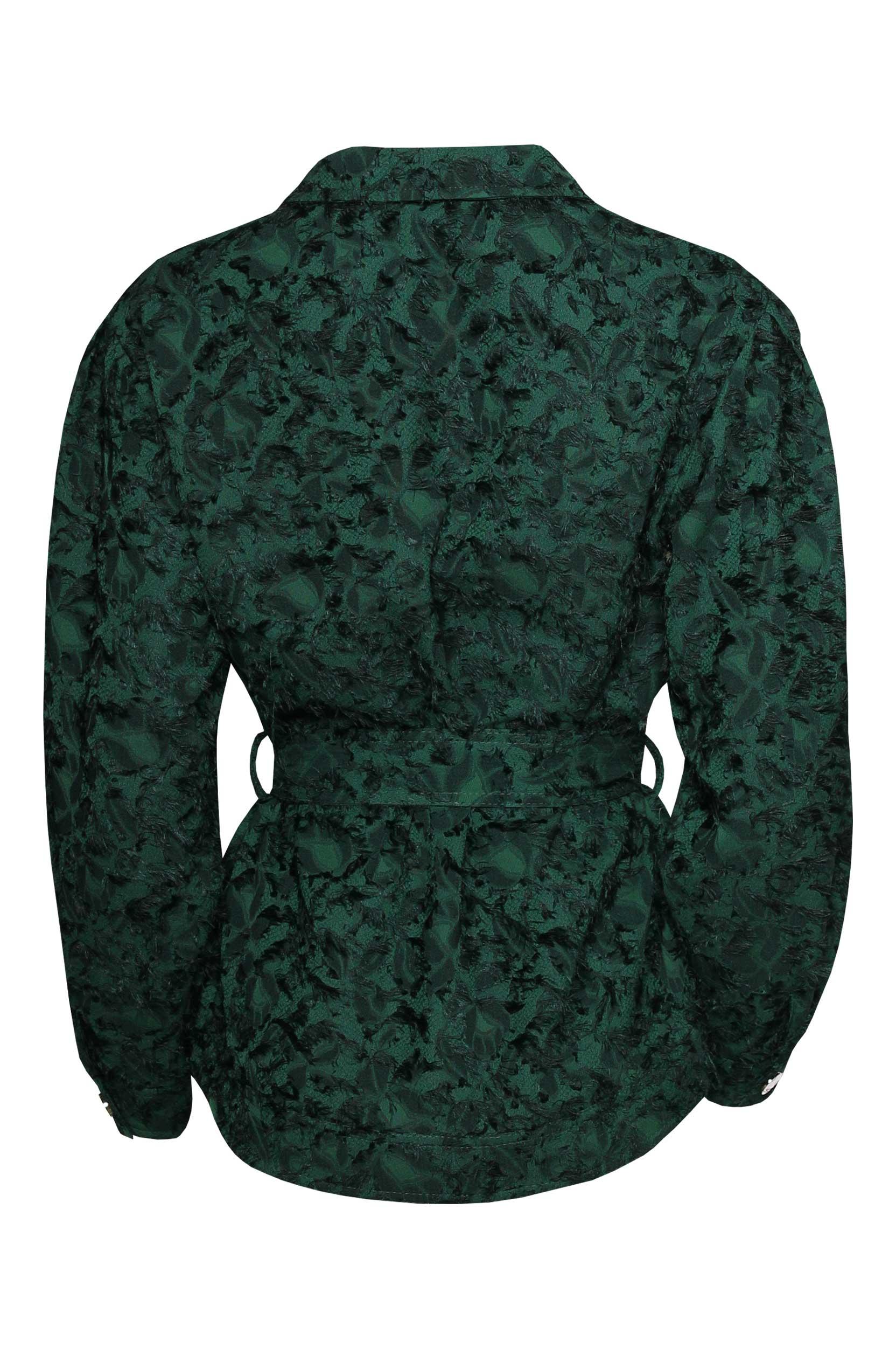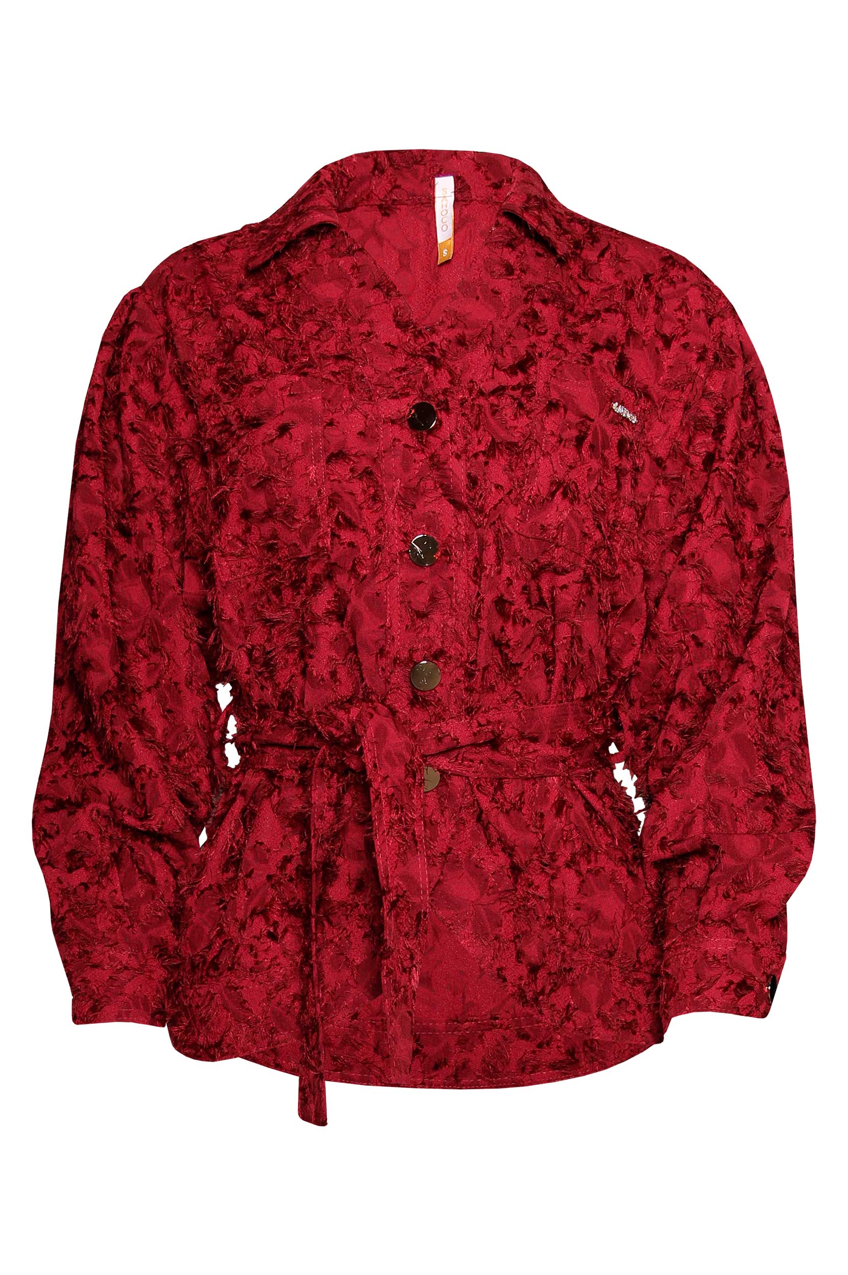 Casaco com bordado em franjas no mesmo tom em relevo. Inclui cinto.