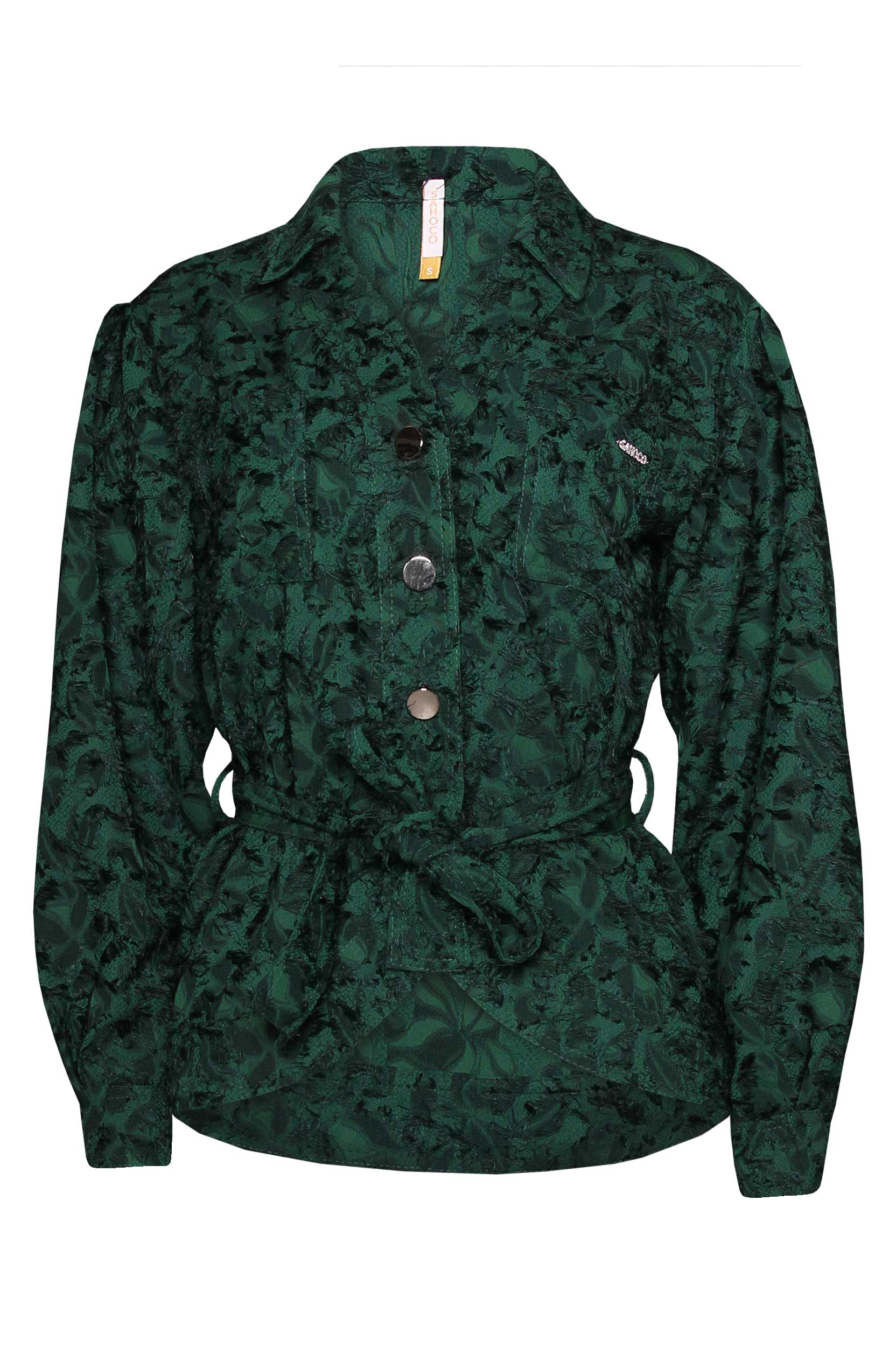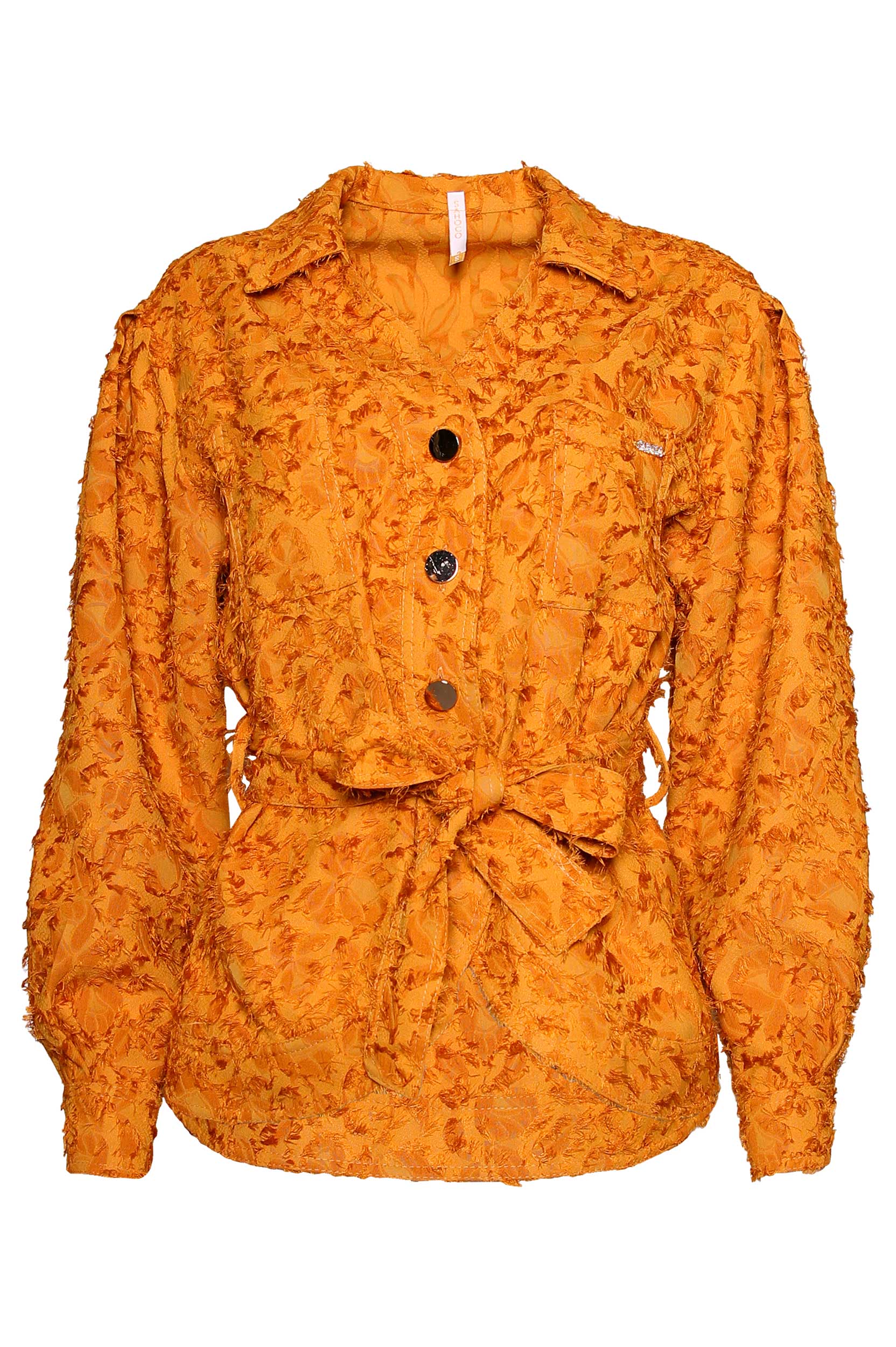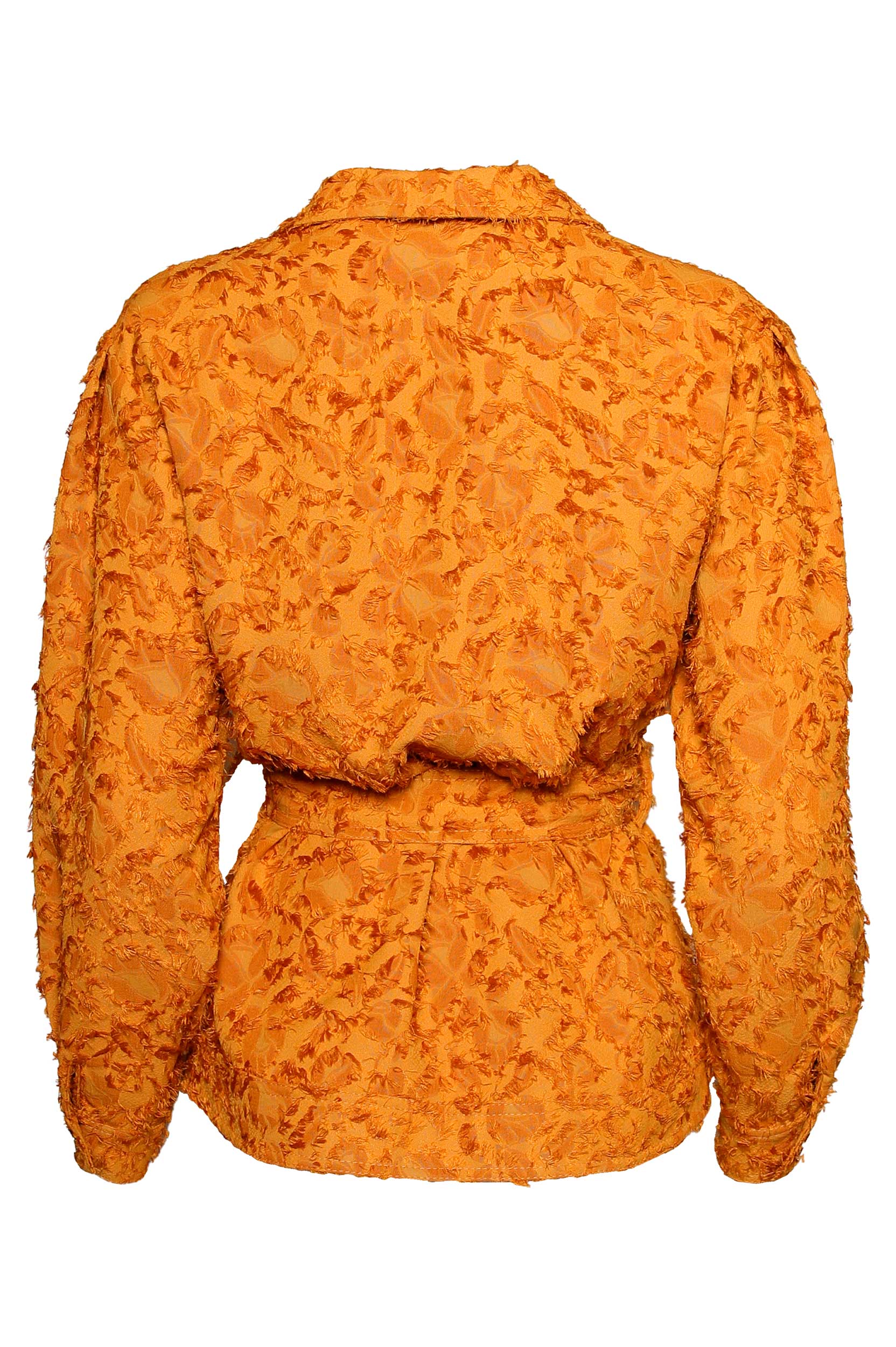 Casaco com bordado em franjas no mesmo tom em relevo. Inclui cinto.