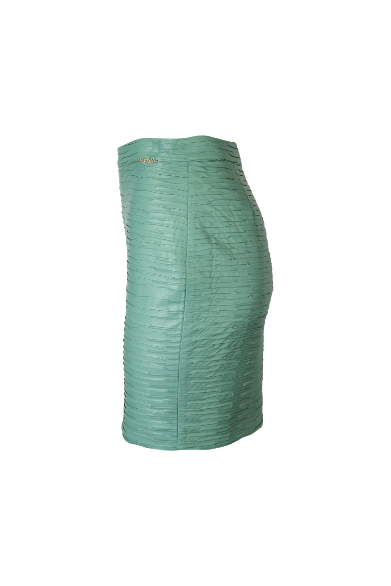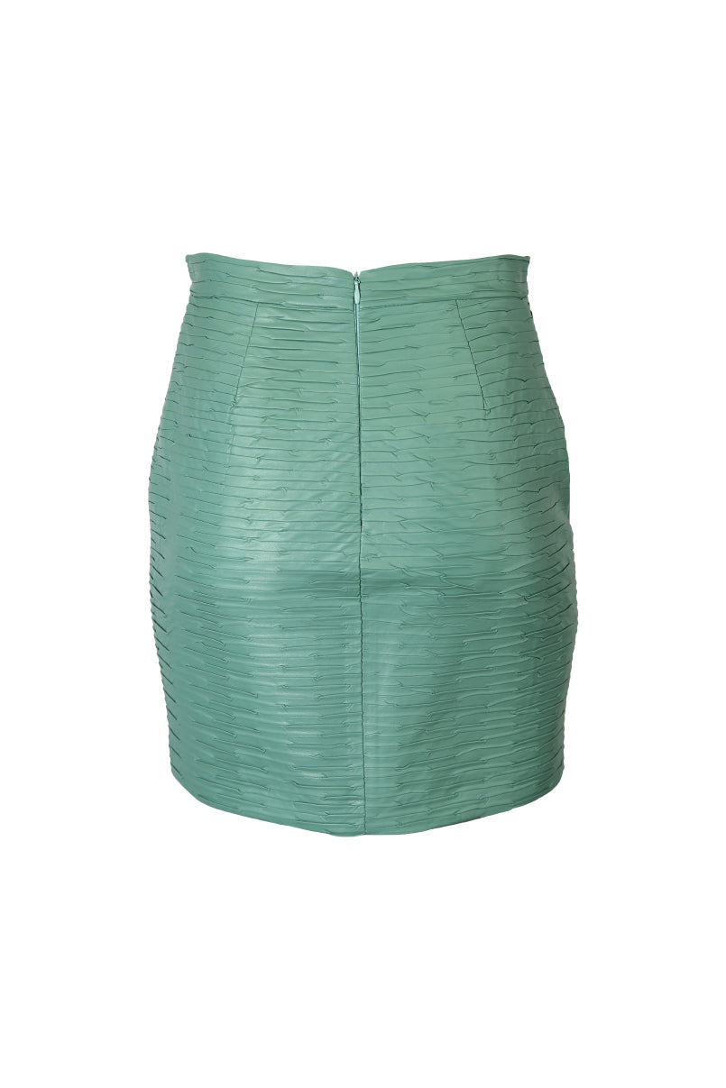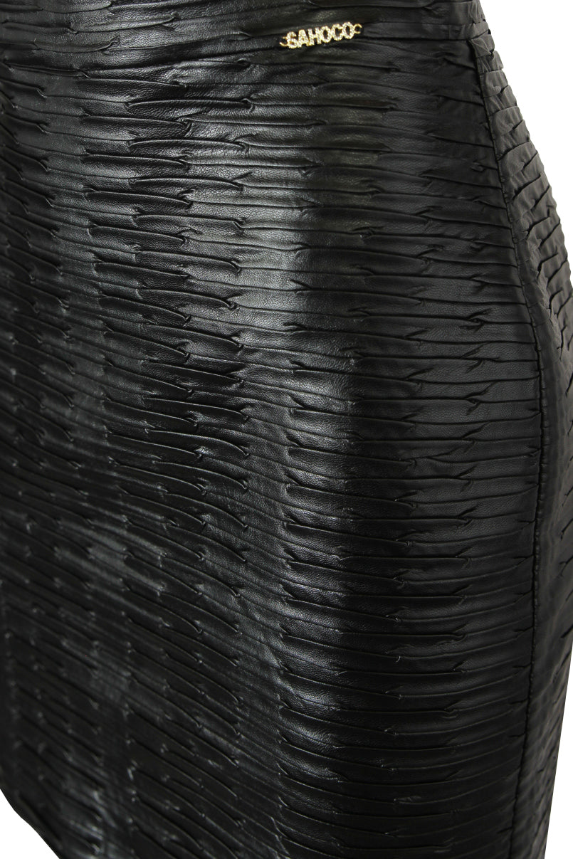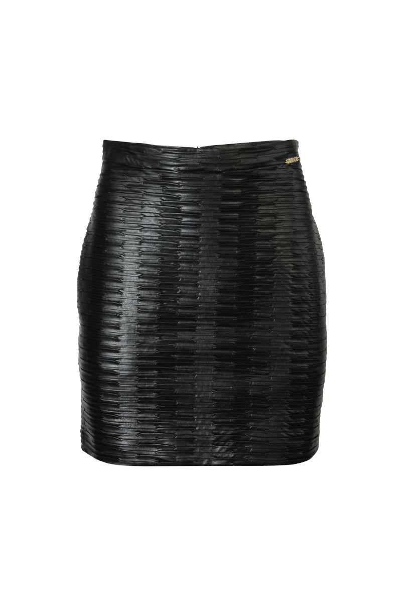 Minissaia em tecido com efeito pele com textura. Cintura média com cós.